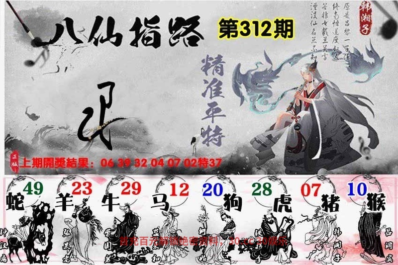 | 312期单【牛羊猪鸡】双【龙猴虎马】开龙14准 |